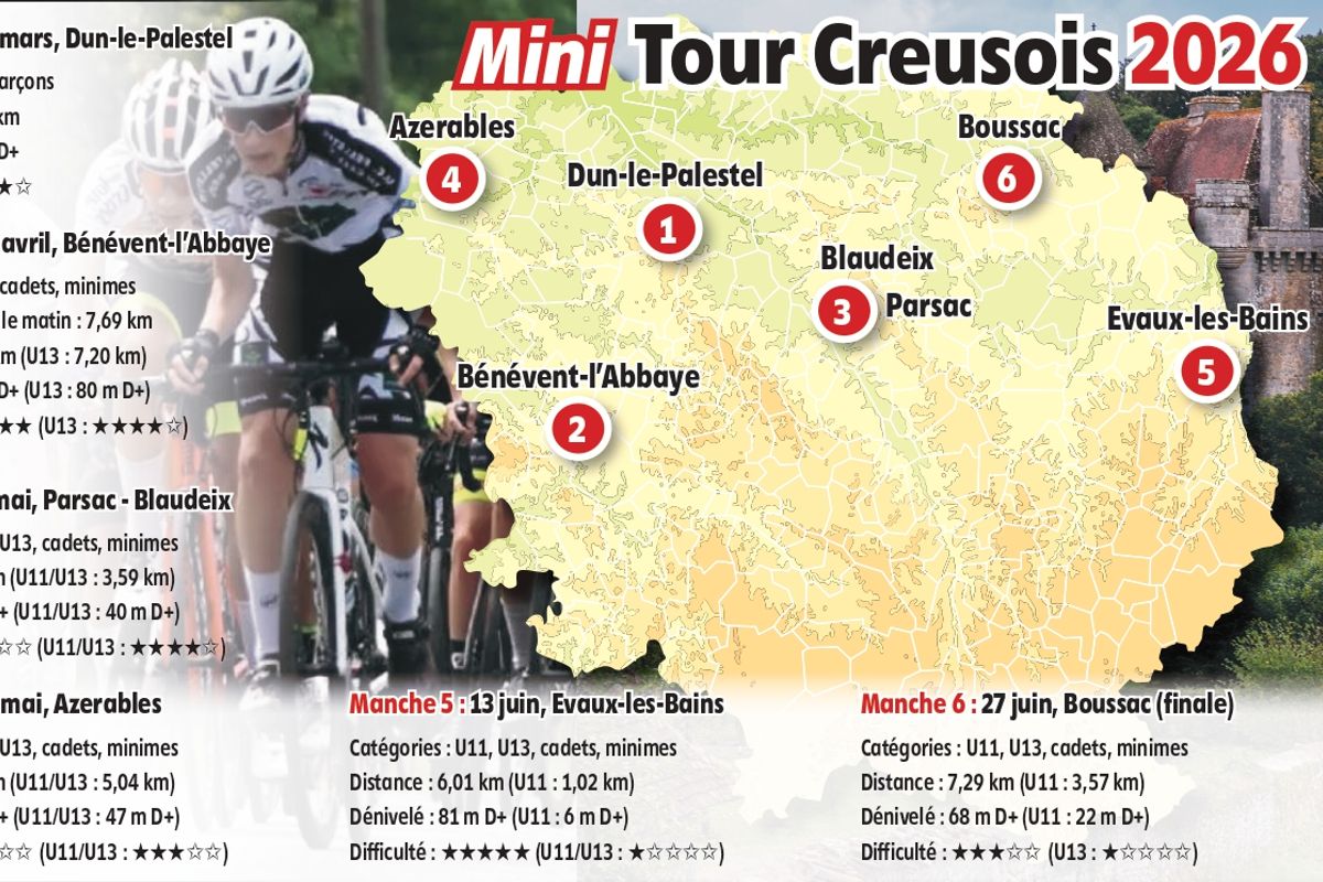 La 12e édition du Mini Tour Creusois, épreuve réservée aux jeunes cyclistes, débutera le samedi 21 mars prochain, à Dun-le-Palestel. Divisée en six manches réparties jusqu’à la fin du mois de juin, la compétition attire chaque année les futurs champions venus de toute la France, preuve de la...